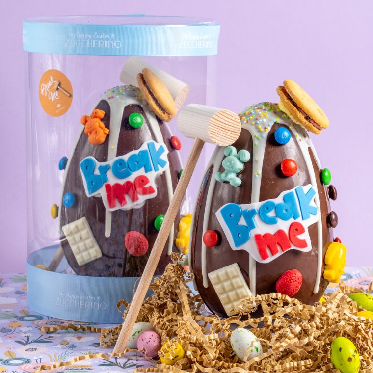 Ένα χειροποίητο σοκολατένιο αυγό γεμάτο με εκπλήξεις. Περιλαμβάνει ξύλινο σφυράκι! (18 εκατοστά)